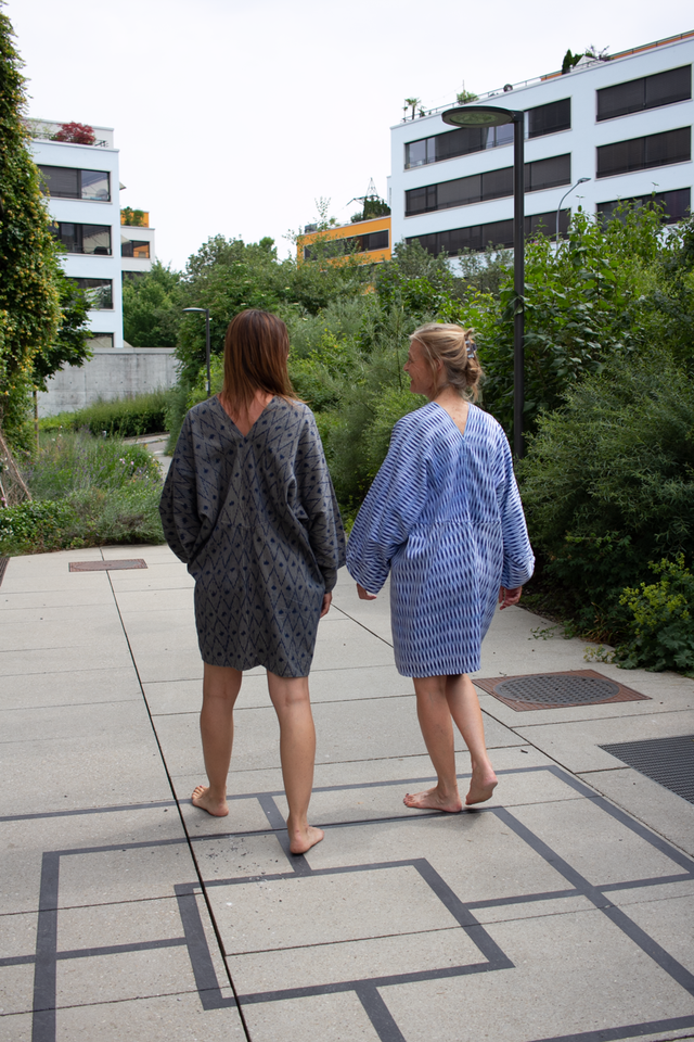 Schluesselwoerter: Handgewebt, Ikat, authentische Motive, faire Loehne, ethisch, geschlechtsneutral.