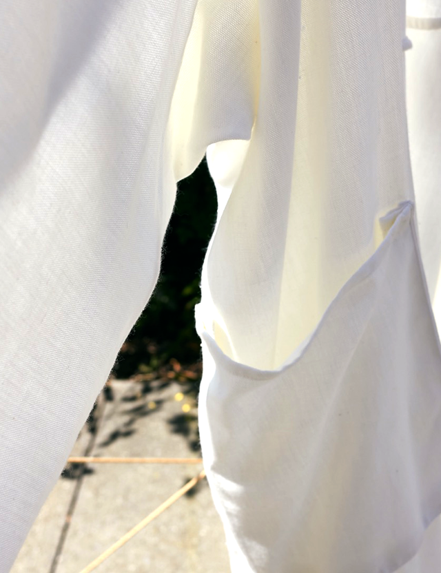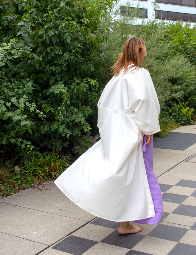 By marrying this precious fabric with the innovative kinetic garment construction technique pioneered by Richard Lindqvist, we've created a timeless piece that effortlessly transitions from day to night. Wear it open as a breezy cover-up or cinch it with a belt for a more defined silhouette.
