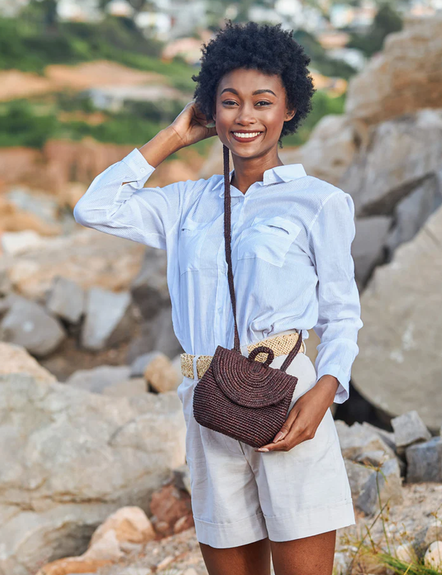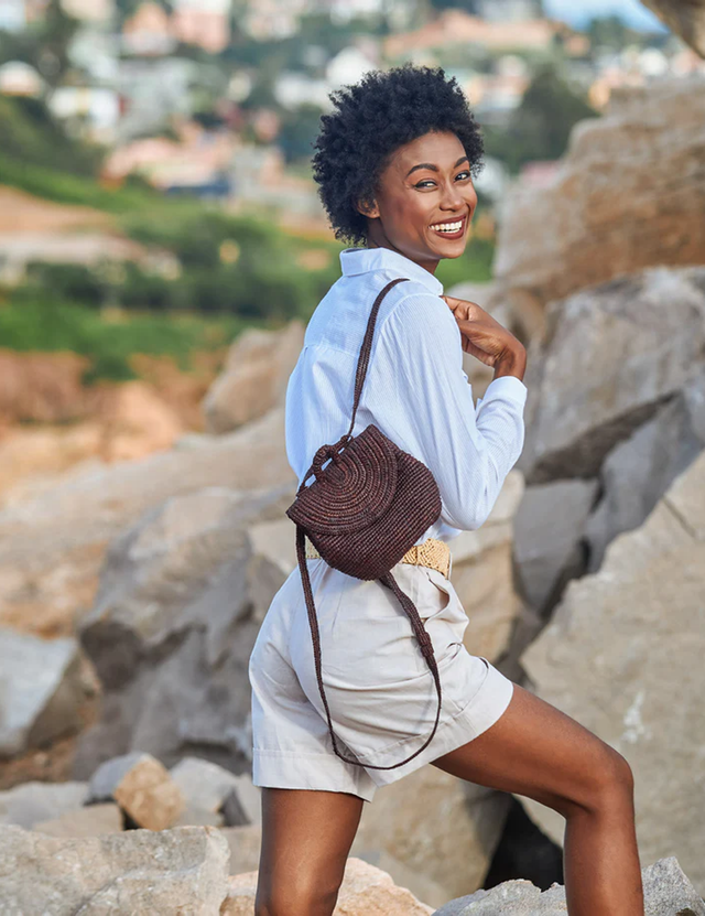 "MIOVA bedeutet auf Madagassisch 'veränderlich' und das trifft auf diese innovative Kreation zu, die mühelos vom Rucksack zur Handtasche umfunktioniert werden kann.