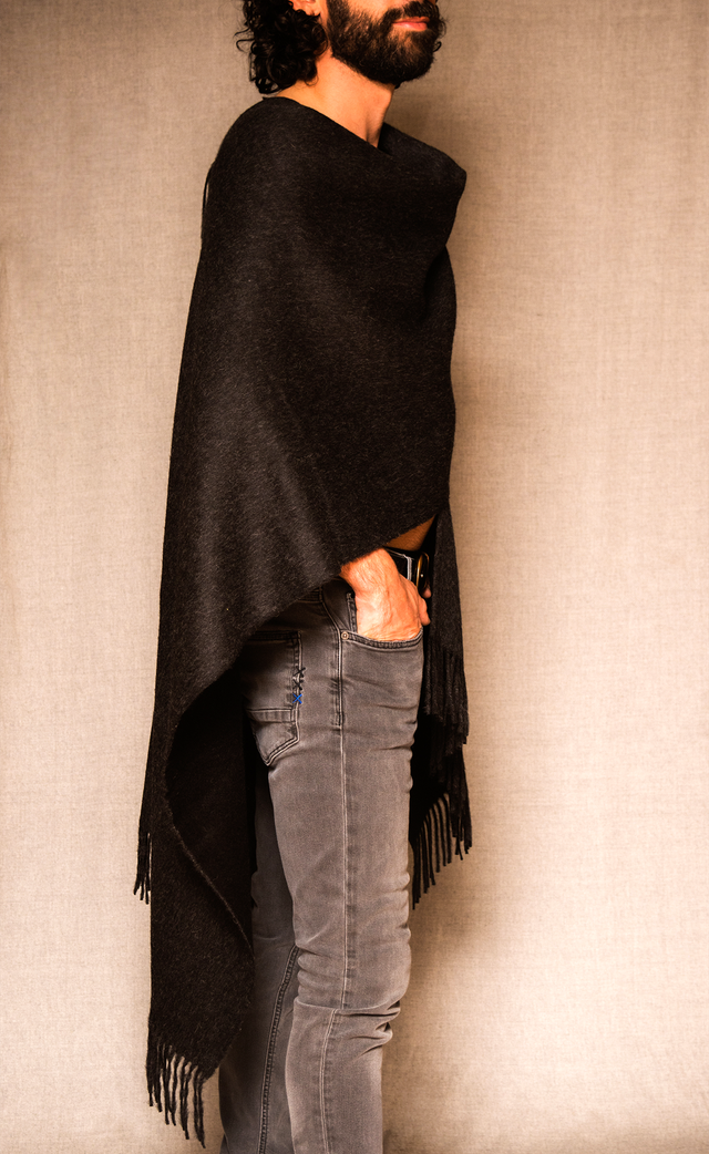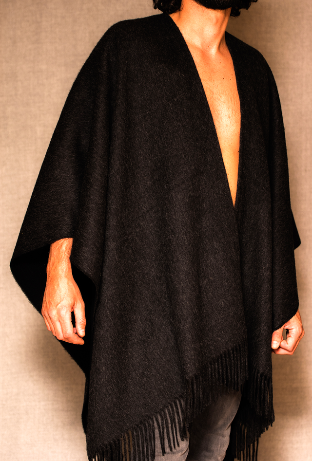 Diese edle Ruana aus 100% Baby Alpaka ist ein letztes Zeugnis unserer Entscheidung, uns von industriell gefertigten Textilien zu verabschieden. Die tiefschwarze Wolle stammt aus fairer Produktion in Peru.