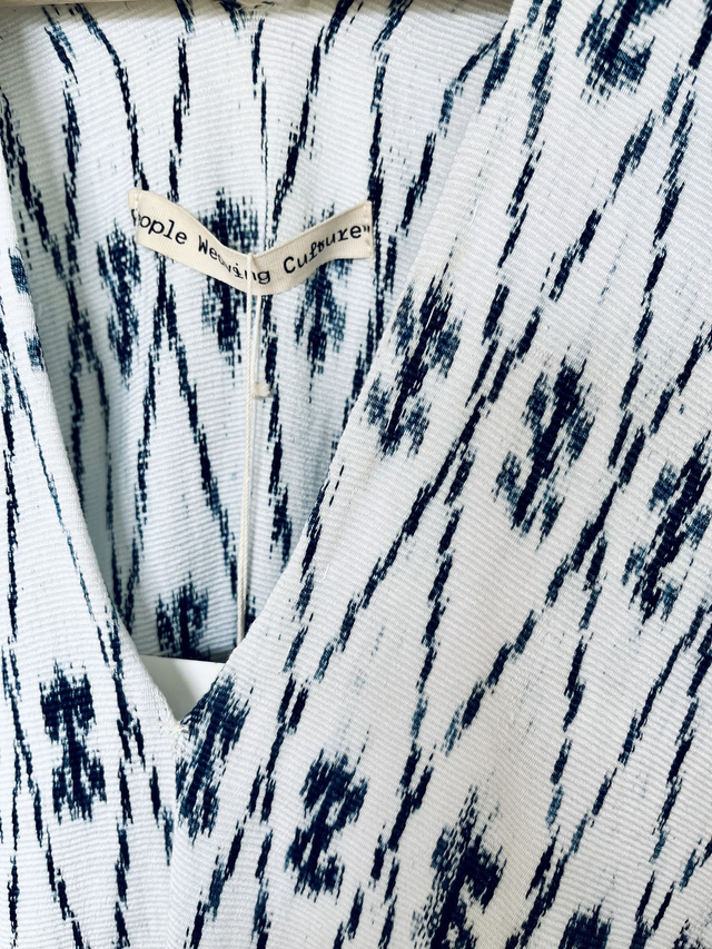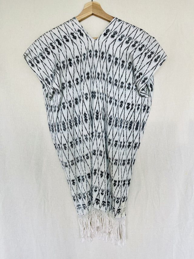 Beschreibung: Das Tacabamba Ikat Kleid aus einheimischer Baumwolle ist ein handgefertigtes Meisterwerk aus Tacabamba, Peru. Hergestellt aus hochwertiger einheimischer Baumwolle und mit der traditionellen Taillenwebtechnik gewebt, besticht dieses Kleid durch seine Eleganz und kulturelle Tiefe. Die Färbung erfolgt mittels der Ikat-Technik, die komplexe und einzigartige Muster hervorbringt. Jedes Kleid ist ein Unikat, das die reiche Tradition und das Kunsthandwerk Tacabambas widerspiegelt.